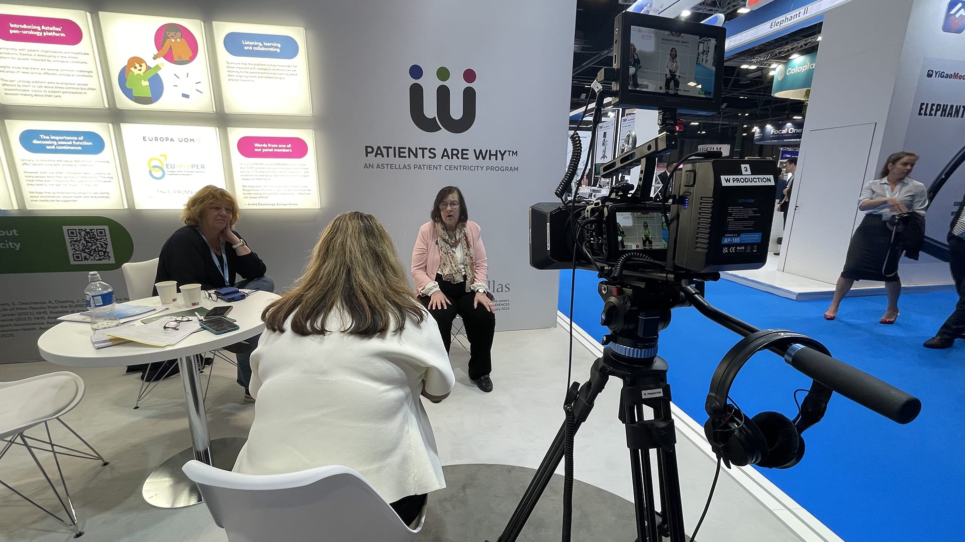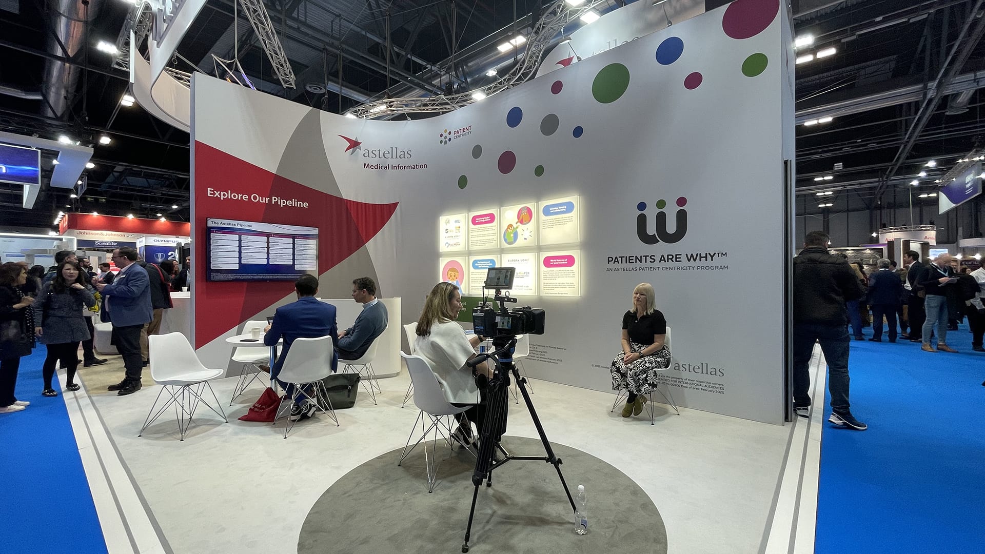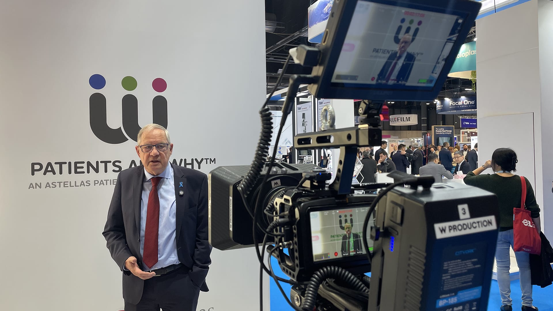 Filming of expert interviews and aftermovie production at the Astellas booth during the international European Association of Urology congress.