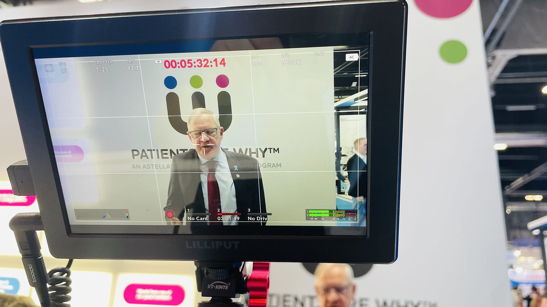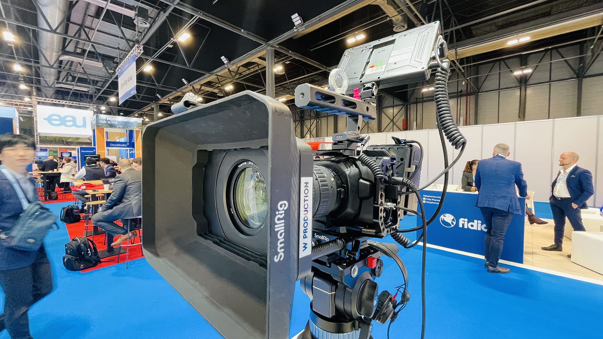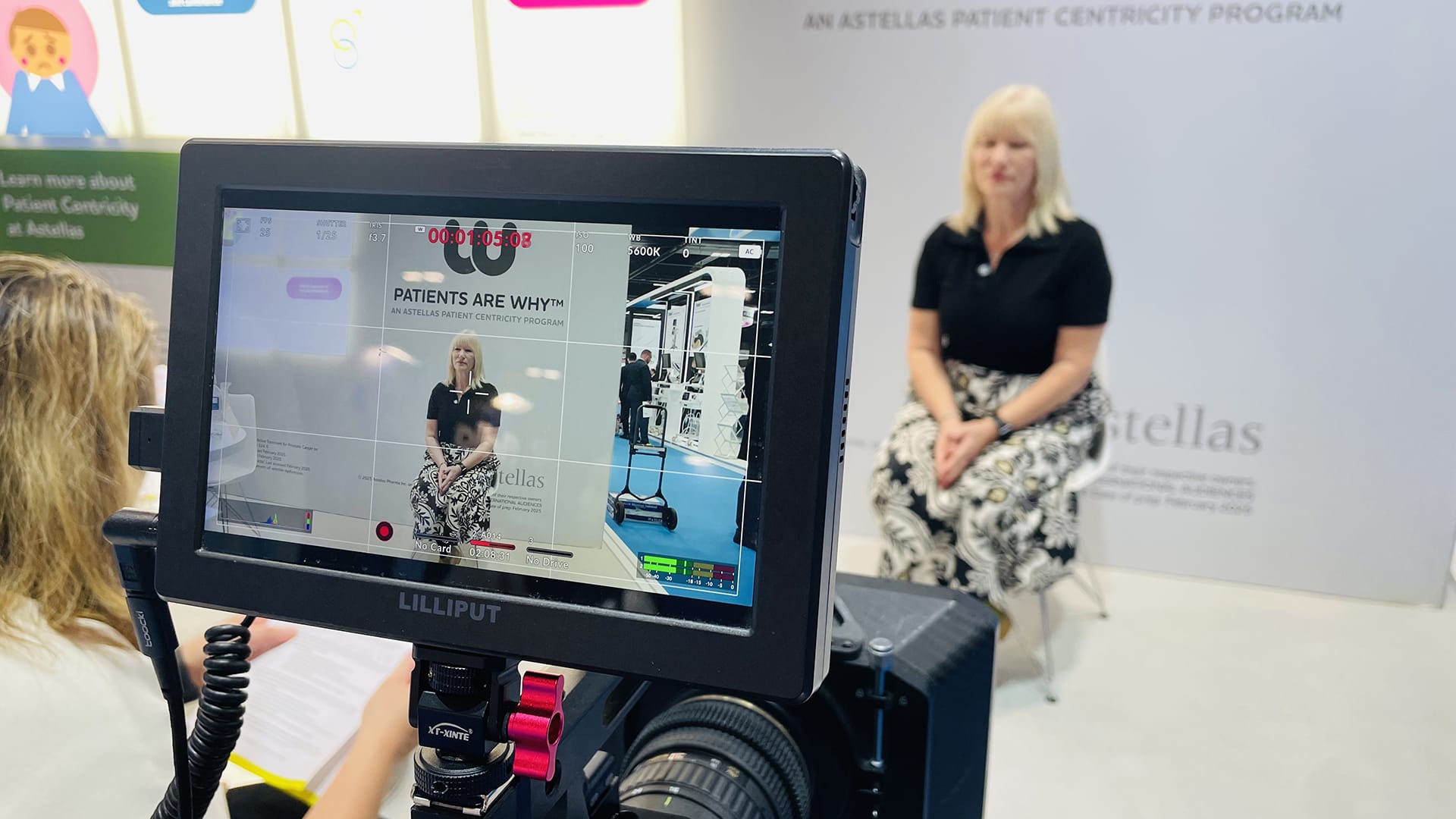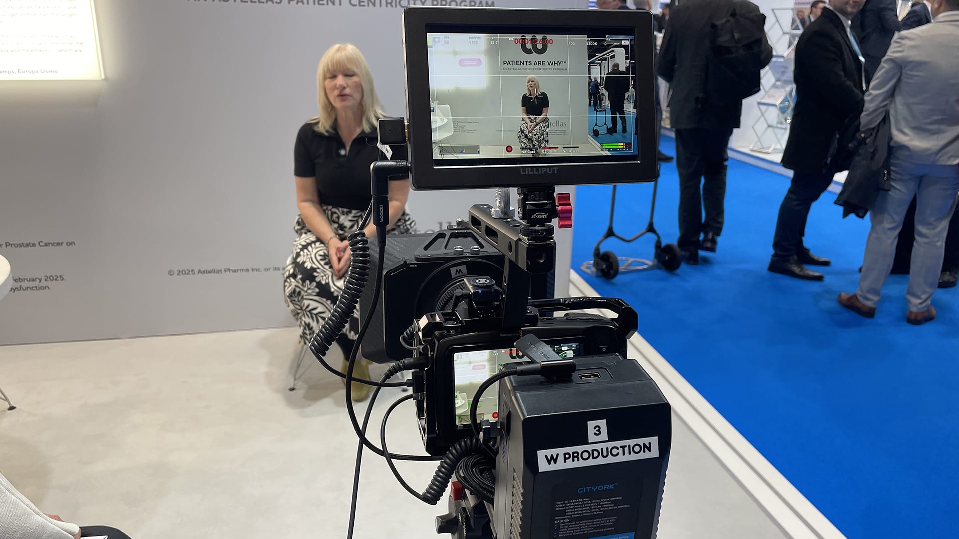 Filming of expert interviews and aftermovie production at the Astellas booth during the international European Association of Urology congress.
