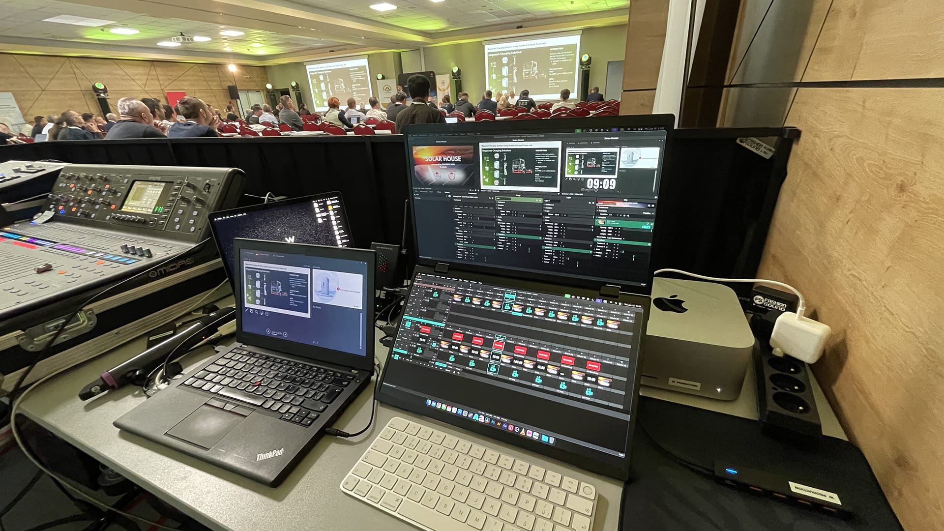 The production required precise coordination between control positions and smooth switching of the visual workflow throughout the programme. After the official conference agenda, the evening continued with a DJ performance, where we created the atmosphere using VJ visuals designed to match the club-style character of the closing event. The result was a visual production that connected the formal conference environment with a dynamic social atmosphere.