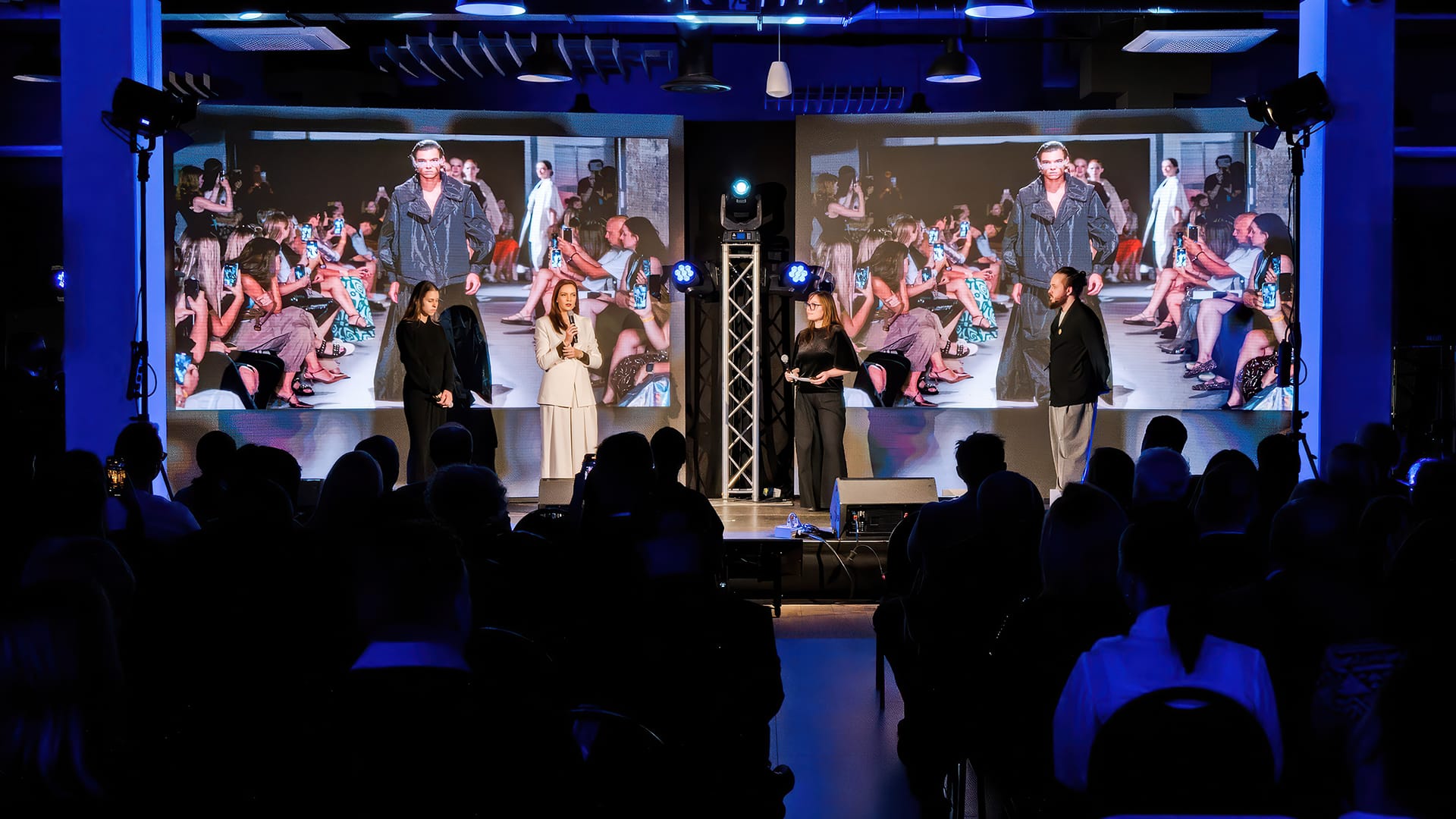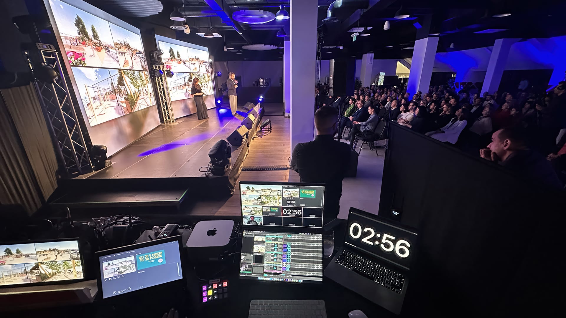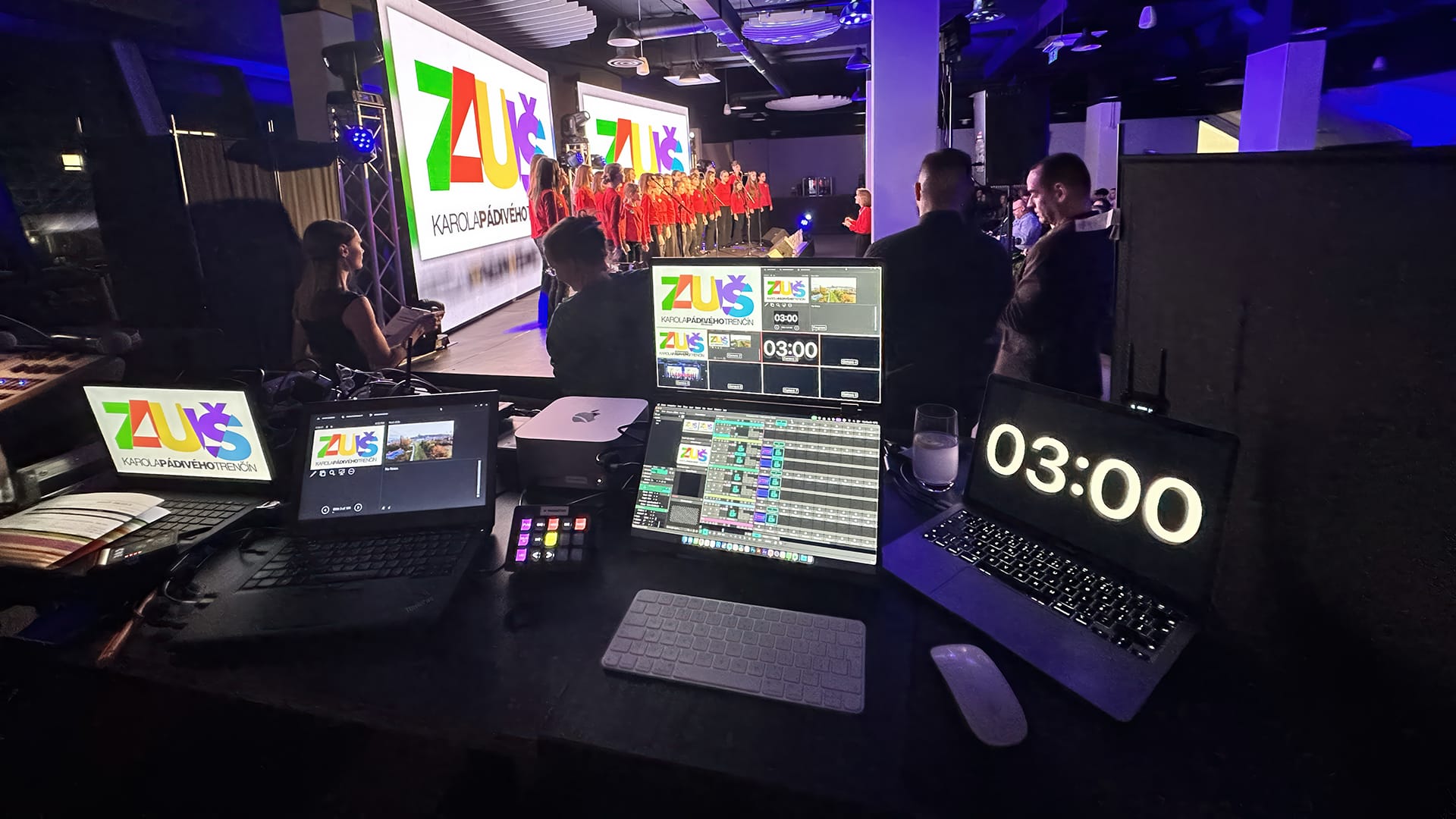 The production was carried out in close cooperation with an external livestream team, with continuous signal sharing between systems. The multicamera feed produced by their control room was received into our visual workflow in real time and used for delay screens, while presentation content managed from our side was simultaneously routed into the livestream. The goal was to maintain a unified visual experience across LED screens and the online broadcast despite the complexity of the production environment.