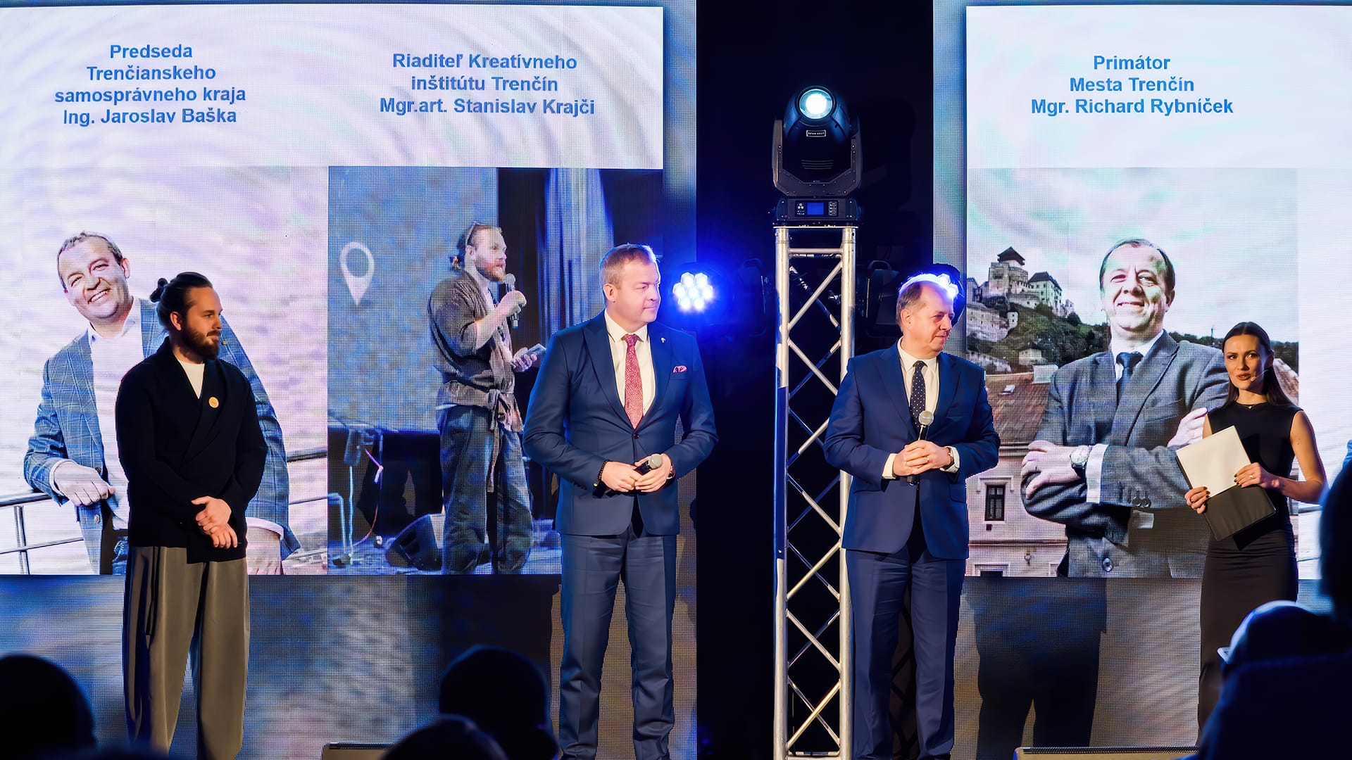 As part of a Trenčín 2026 project event held within the premises of the Trenčín stadium, we provided visual management of a large-format LED screen and delay displays together with coordination of presentation content. An exceptional part of the production was the delivery of the main P3.9 LED screen from our own setup, which we creatively divided into two sections to evoke the visual concept of an open book as the central scenographic element.